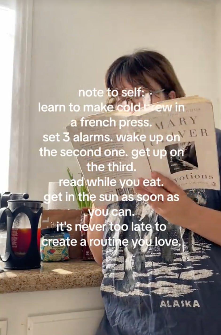 The longer I think about it the more sure I am that we have lost the sincerity and realness of the old-school morning routine. And there surely are creators who still lead the voiceover/talking style but what gives you more exposure is a click, aesthetic videos that give us… nothing, or again a uniform experience. Everyone makes coffee in the morning and yes it is good to stretch, but what makes a day is the other things that make us feel good about ourselves.