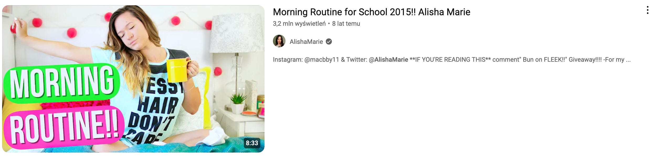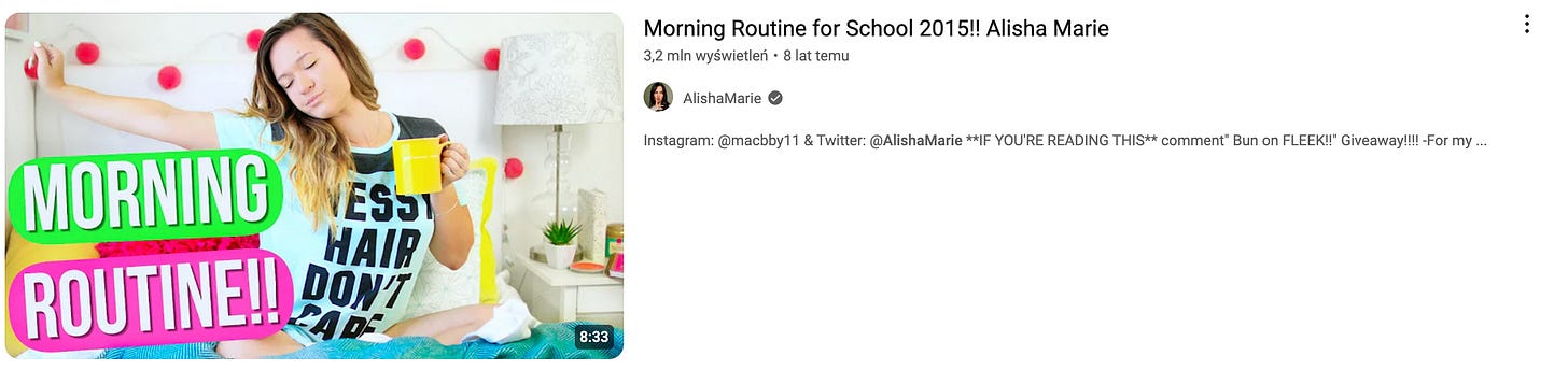 I never had issues watching my morning routine videos. Alisha Marie, Claudia Sulewski, and others just showed me their mornings (granted they were edited because no one wakes up in full-beat makeup), but they felt somewhat sincere.
